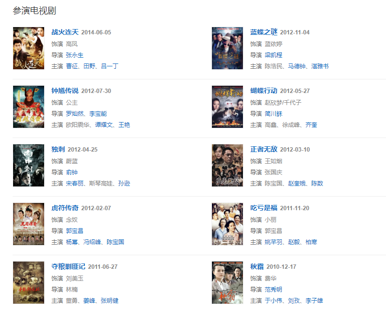 2013年11月,主演的懸疑劇《藍(lán)蝶之謎》播出。2014年6月,領(lǐng)銜主演的抗戰(zhàn)劇《戰(zhàn)火連天》播出。