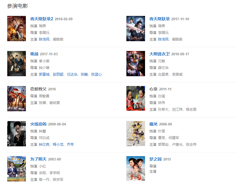 代表作品:女人花、回家的誘惑、百萬(wàn)新娘之愛(ài)無(wú)悔、太平公主秘史、武媚娘傳奇、活佛濟(jì)公、隋唐英雄