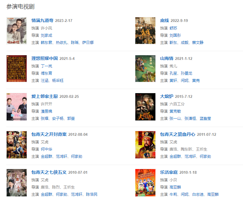 代表作品:小兵張嘎、武林外傳、十三歲女孩、山海情、射雕英雄傳