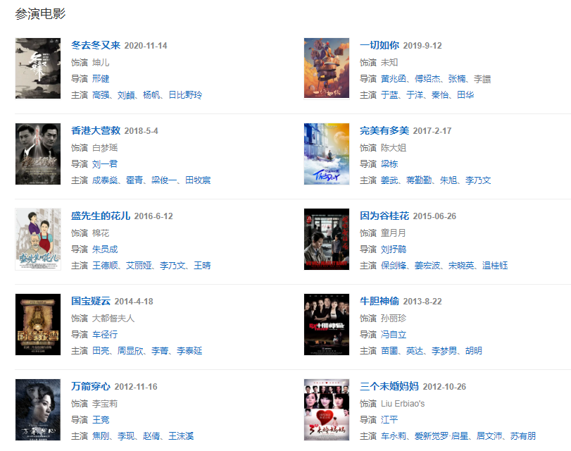 2020720日,與俞飛鴻、姜武等主演的電視劇《愛之初》正式播出;1029日,開機,1114日,主演的電影《冬去冬又來》上映,并在片中飾演戰(zhàn)爭摧殘、喪失語言能力的女主角坤兒。