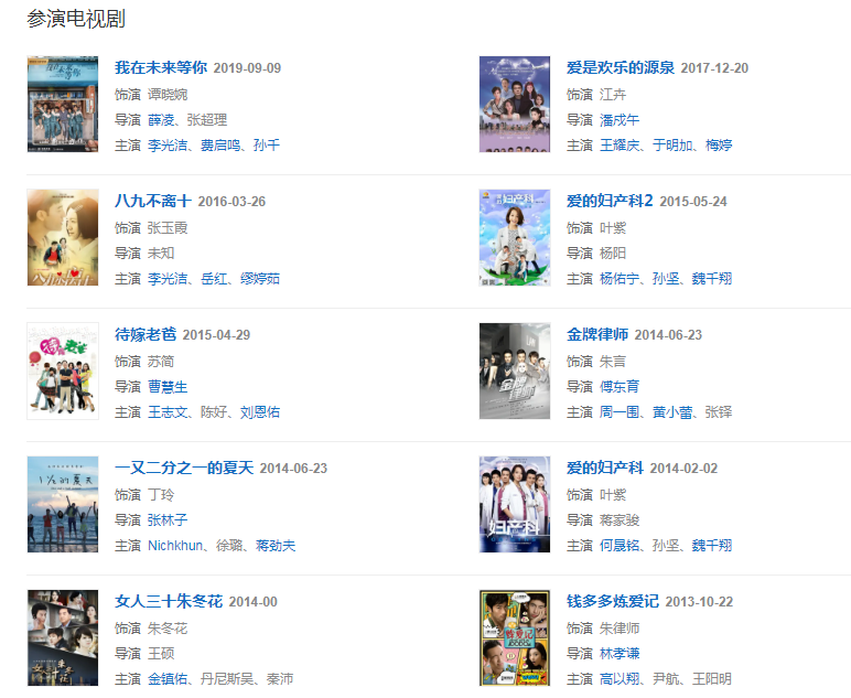 代表作品:青春那些事兒、中國最強音、女人如歌、我愛記歌詞、女人三十朱冬花、愛的婦產(chǎn)科、待嫁老爸