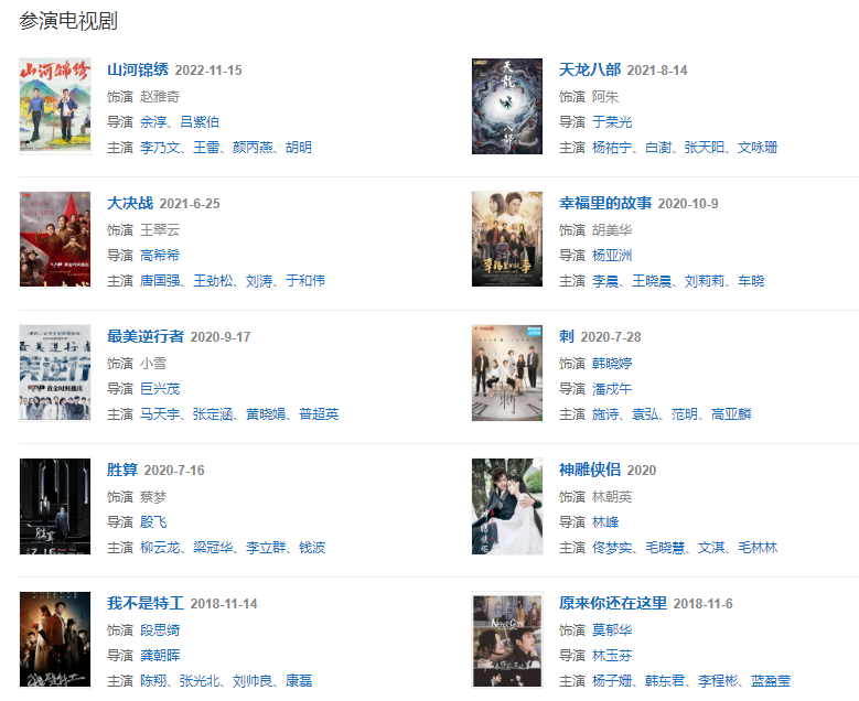 代表作品:延禧攻略、美人心計(jì)、勝算、刺、特勤精英、那些年,我們正年輕、不如冒險(xiǎn)、幸福里的春天、大決戰(zhàn)