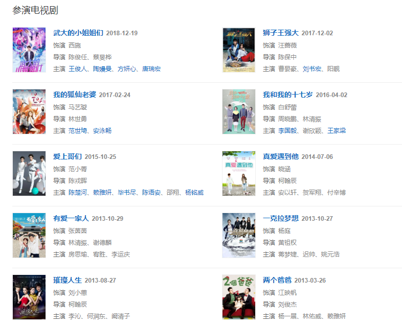 2013年,周曉涵又出演了《兩個(gè)爸爸》、《璀璨人生》和《一克拉夢(mèng)想》。