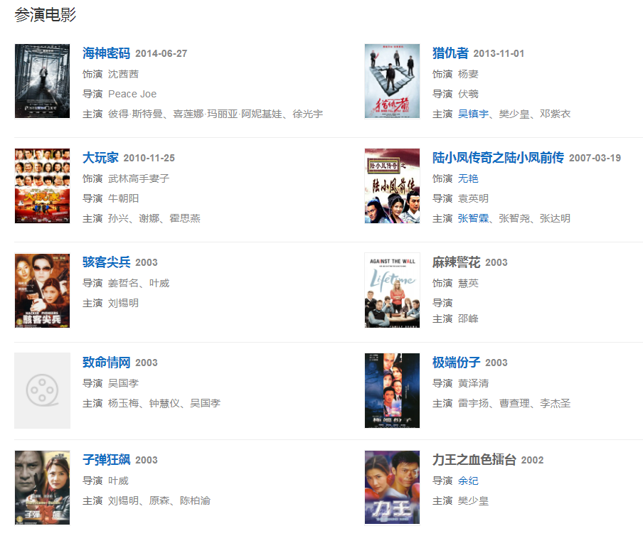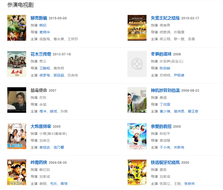 2000年在古裝劇《鐵齒銅牙紀(jì)曉嵐》中飾演莫愁。
