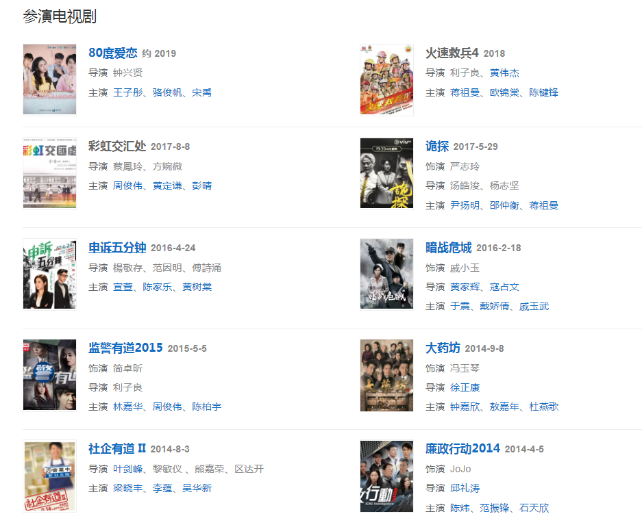 代表作品:突圍行動、甜孫爺爺、鐵馬尋橋、翻叮一族、廉政行動、隨時候命