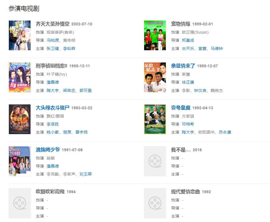 代表作品:值得、舍不得你、放不低、親密關(guān)系、感情線上、終身美麗、眉飛色舞、唉聲嘆氣、獨一無二、信者得愛、孤男寡女、瘦身男女、鐘無艷、盲探