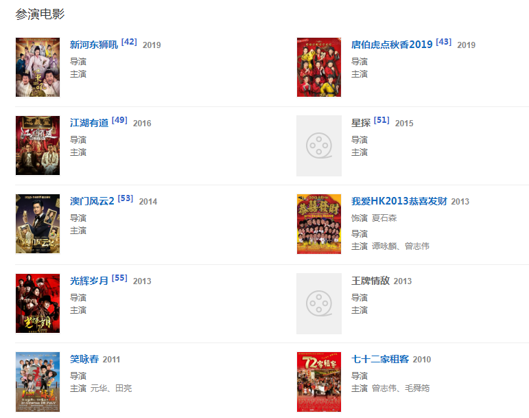 代表作品:鹿鼎記、楚留香、精裝追女仔、我至叻