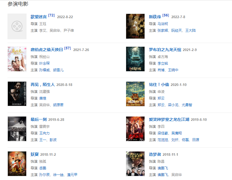2021年2月9日,主演的奇幻探墓電影《羅布泊之九龍?zhí)旃住吩隍v訊視頻獨(dú)家上線;同年,特別主演反腐懸疑題材網(wǎng)劇《黑金風(fēng)暴》;參演電影《唐伯虎之偷天換日》。
