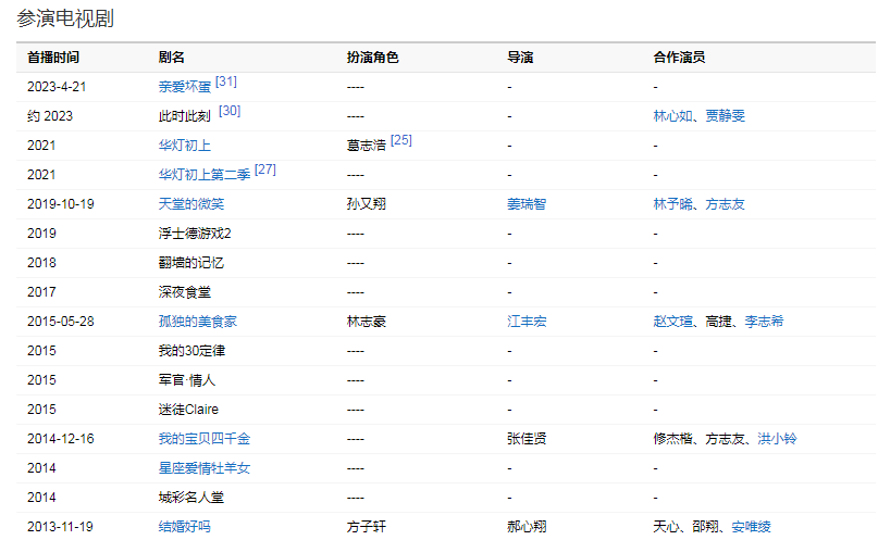 2002年,出演個(gè)人首部電視劇《名揚(yáng)四?!?,從而正式進(jìn)入演藝圈 。