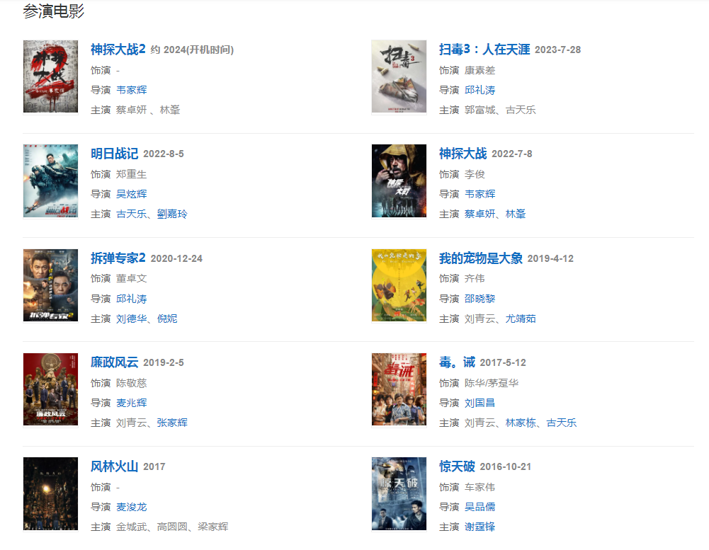 2020年12月24日,與劉德華合作主演的犯罪動(dòng)作片《拆彈專家2》上映,片中飾演處事冷靜的拆彈專家董卓文。
