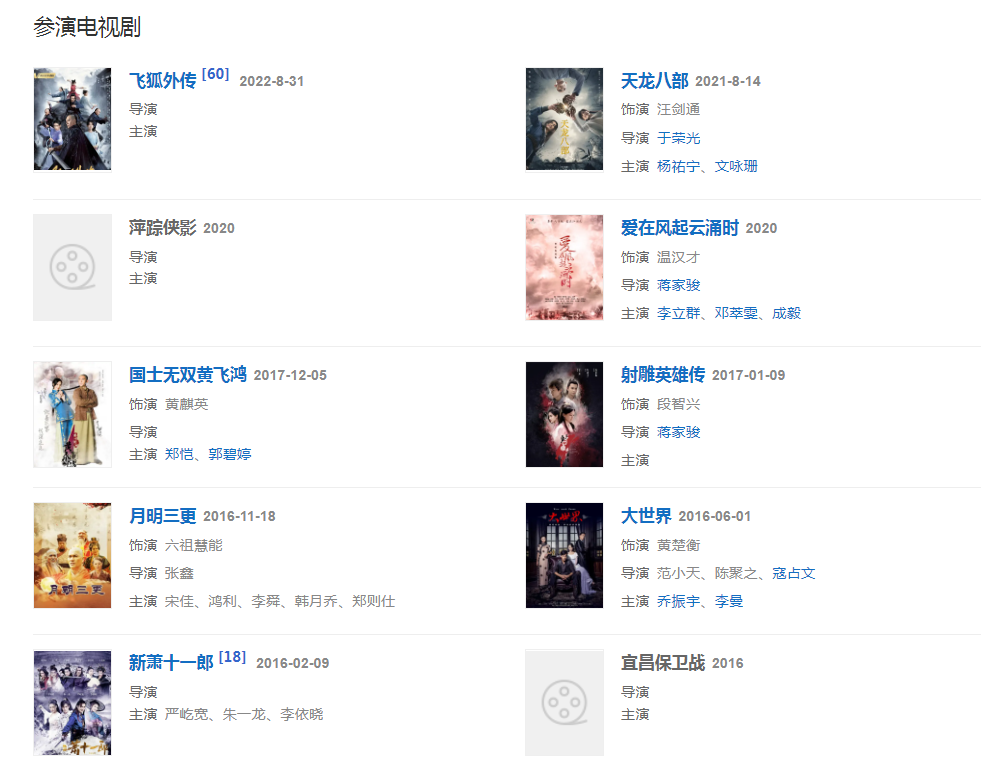 2023年1月4日,參演的《天龍八部之喬峰傳》發(fā)布“英雄”版預(yù)告,影片預(yù)計今年上線視頻平臺。