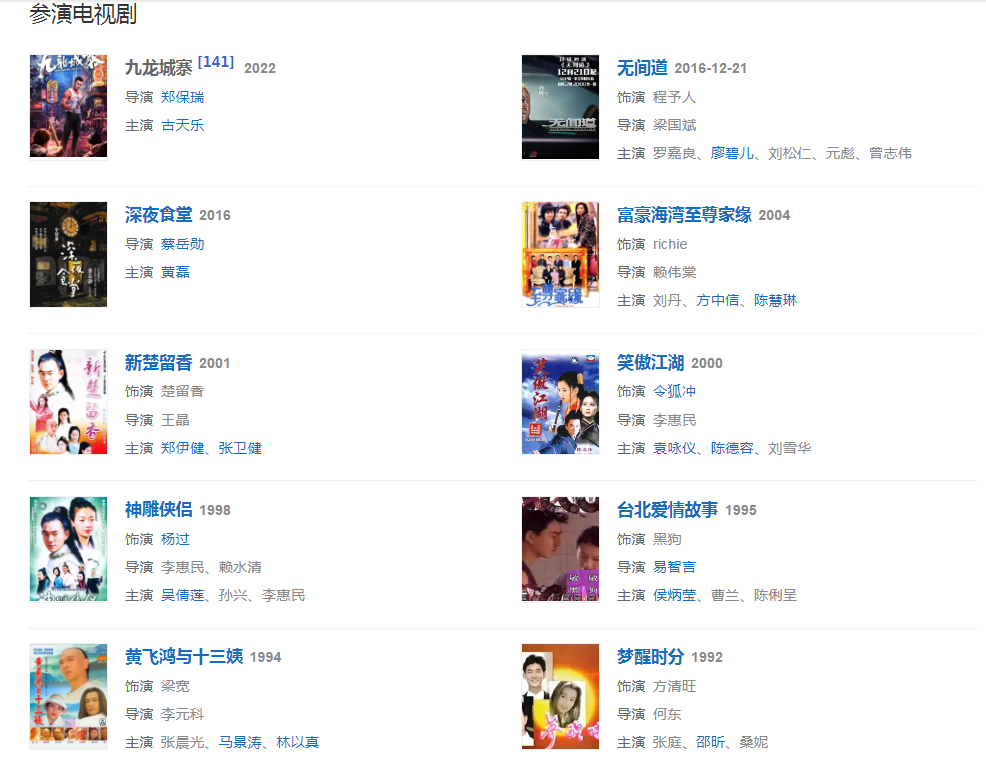 1998年發(fā)行專輯《愛像太平洋》,其中歌曲《對面的女孩看過來》《傷心太平洋》成為其代表作;同年在古裝劇《神雕俠侶》中飾演楊過 。