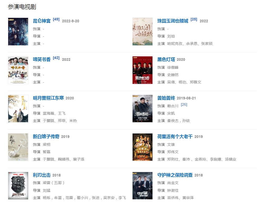 2022年,參演電視劇《儒林外史之啼笑書香》。5月15日,參演的軍事動作電影《狙擊之王:暗殺》在銀川殺青
