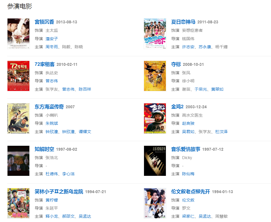 代表作品:小魚兒與花無缺、齊天大圣孫悟空、小寶與康熙、西游記、倫文敘老點柳先開、真真假假、你愛我像誰、月圓了、真英雄、少年英雄方世玉